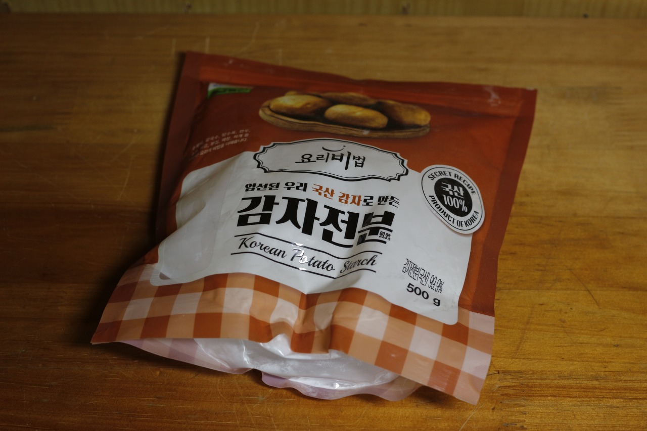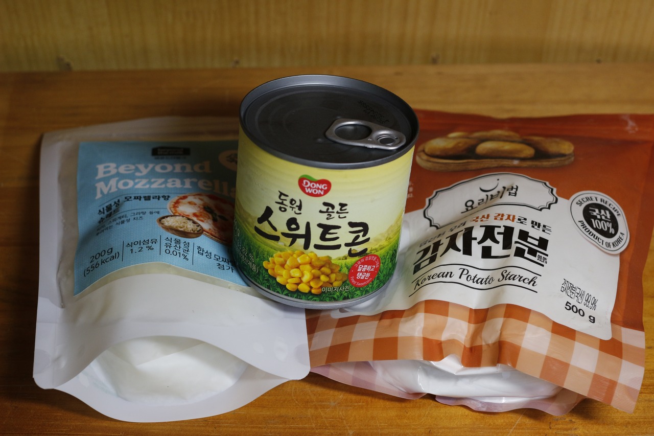 그냥 옥수수만 튀기면 애매해서 감자를 갈아서 섞으려고 했는데, 집에 감자는 떨어졌고 주말이라 집 근처 마트가 문을 닫을 관계로 집에 남아있는 감자전분을 사용했다.