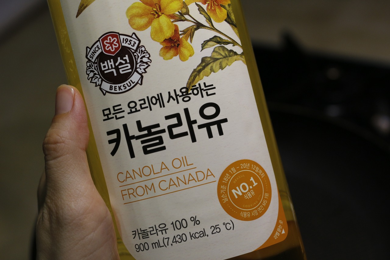 옥수수전을 가장한 옥수수 튀김을 할 때는 식물성 기름, 카놀라유를 사용해본다.