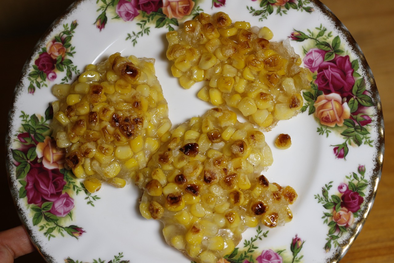 어느 정도 익히면 그릇에 덜어두었다가 식으면 먹는다. 중요한 점은 옥수수튀김에 들어간 감자전분이 다 익을 때까지 제대로 익혀야 한다는 점이다. 식물성 음식이라 좀 덜 익는다고 탈이 나는 것은 아니지만 덜 익은 음식을 먹으면 기분이 나쁘다.