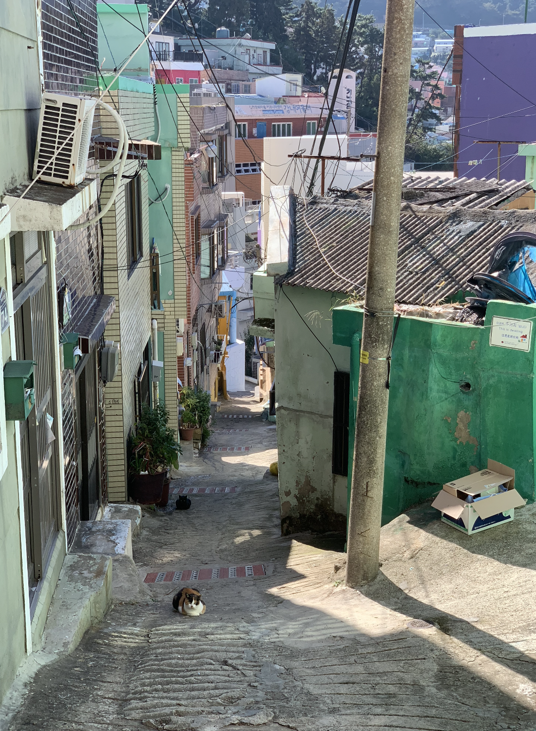공간을 만들고 싶다는 생각이 항상 있었기에, 부동산에 연락해 감천문화마을로 향했다. 가장 먼저 눈에 띈 것은 고양이었다. 단층 주택이 대부분인 이 공간에서 고양이는 지붕 위에서 유유자적 걸어 다니기도, 낮잠을 자기도 했다. 작은 골목에는 차가 들어오지 못하므로, 꽤 안전해 보였다. 높은 건물과 쌩쌩 달리는 차가 없다는 것만으로도 동물들은 보다 안전하게 이곳에서 살아간다.