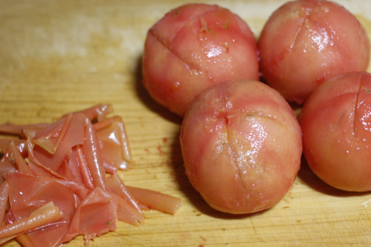 먼저 토마토의 껍질을 벗겨야 하는데 꽤 귀찮은 작업이었다. 이 작업을 하기 싫으면 이미 껍질이 벗겨진채 판대하는 홀토마토를 구매하면 된다. 토마토 껍질을 벗기려면 뜨거운 물에 토마토를 데친다음 껍질을 벗겨야 한다. 나는 칼로 토마토에 십자 모양을 낸 뒤 뜨거운 물을 부은 뒤 다른 밑준비를 하였다. 이렇게 해두면 굳이 물을 끓여 토마토를 데치지 않아도 토마토 껍질을 쉽게 벗길 수 있다.