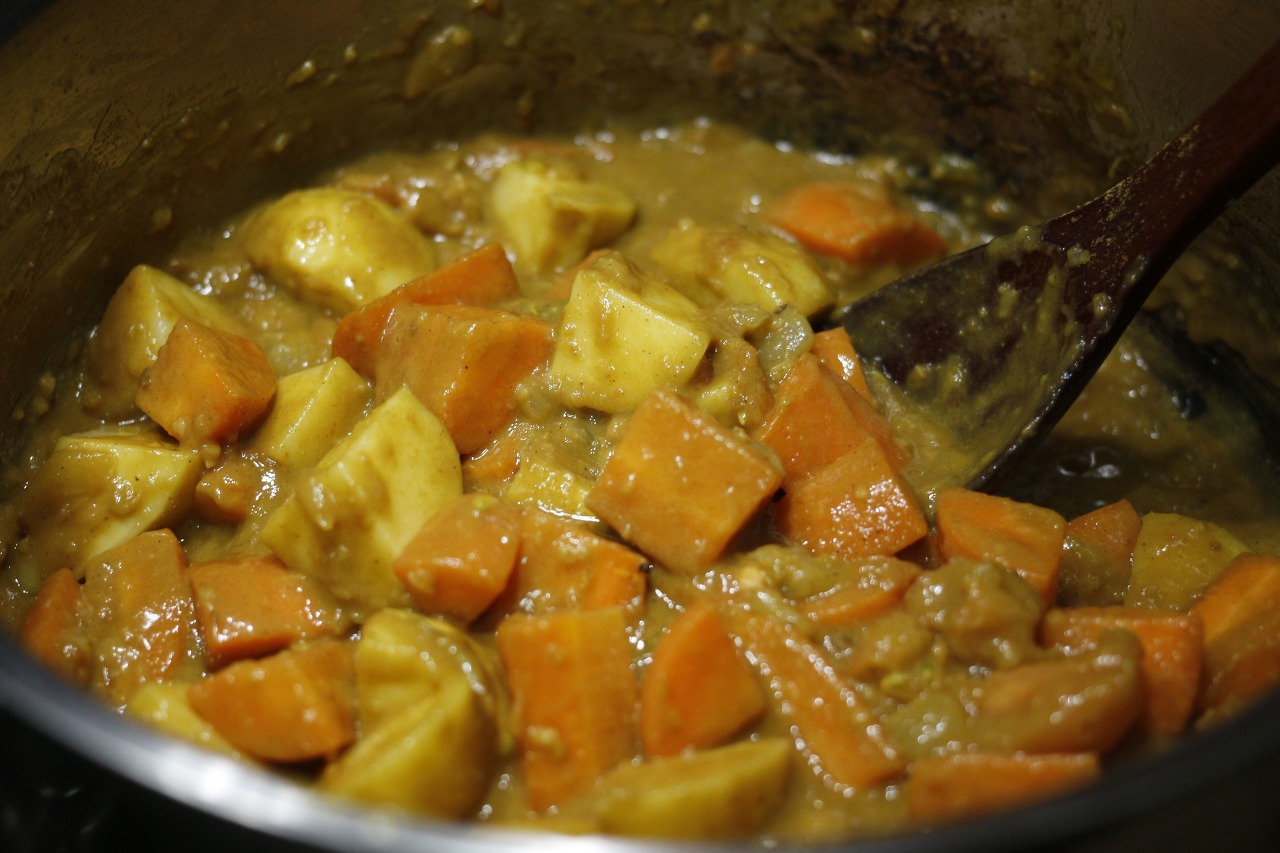오늘은 겨울을 앞두고 구황작물로 요리를 해볼까 생각하다가 만든 비건 카레를 소개해보기로 하겠다. 구황작물이라고 하면 감자, 고구마, 옥수수를 먼저 떠올린텐데 원래 구황작물이라 함은 흉년이 들어 곡식이 부족할 때 기근을 해결하기 위해 주곡 대신 소비할 수 있는 작물을 이야기한다. 구황작물은 생산량이 기후조건에 영향을 적게 받아야 하므로 생육기간이 짧아야 하고, 척박한 땅에서도 잘 자라는 것이어야 하는데 감자, 고구마, 옥수수 외에도 조, 피, 메밀, 보리도 구황작물의 역할을 하였다. 카레에 가장 어울리는 구황작물은 아무래도 감자다 보니 감자가 들어간 비건 카레를 해보기로 하였다.