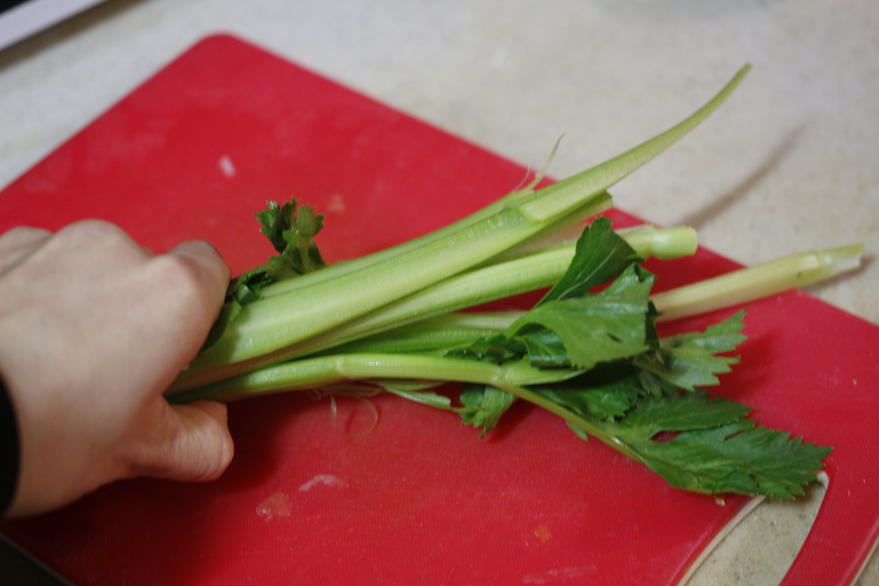 왜 인지는 모르겠으나 샐러리는 길게 자르라고 해서 길게 잘랐다. 이제와서 말하는 것이지만 샐러리도 양파처럼 잘게 썰거나 칼질이 귀찮으니 가위를 사용해 댕강댕강 잘라도 괜찮았을 것 같다.