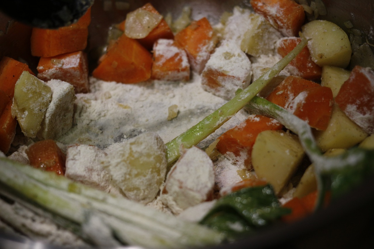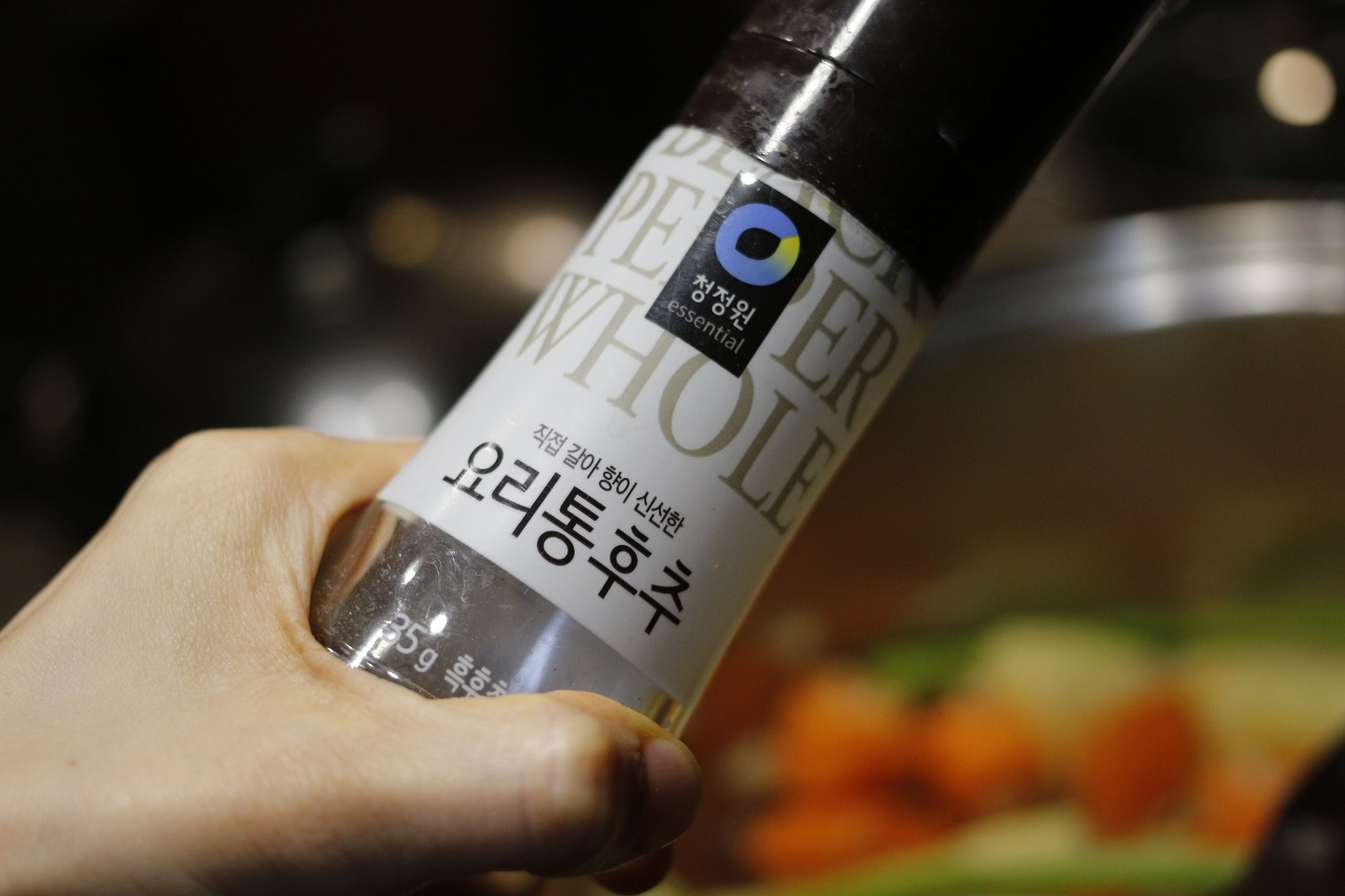 그래도 간은 맞춰야 하니까 통후추를 좀 뿌려봤다. 어느 정도 채소가 익으면 밀가루를 넣은 뒤 술을 부었다. 내가 술을 엄청 많이 넣은 모양인지 요리가 다 끝나고도 음식에서 술 냄새가 났다.