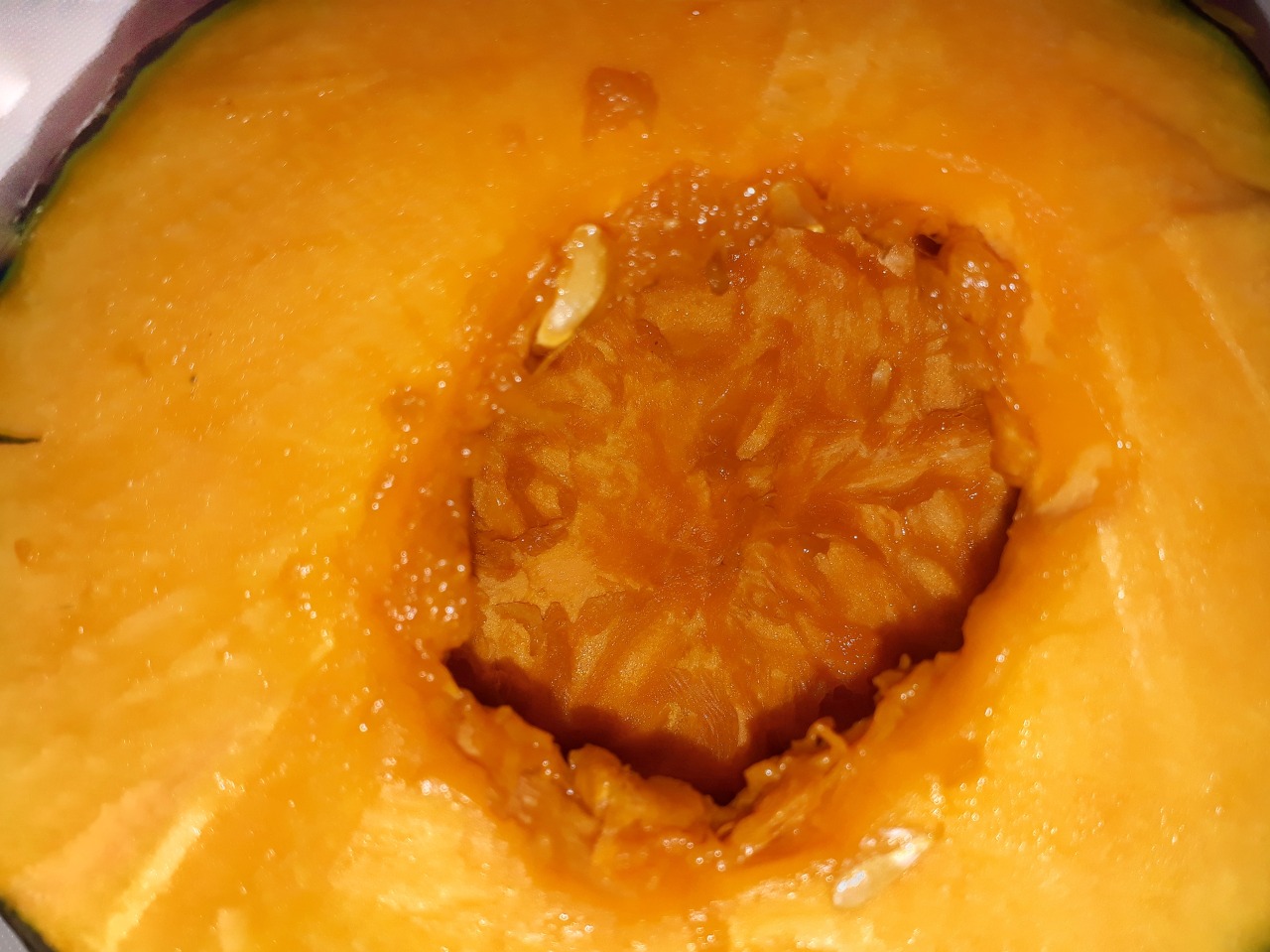 단호박의 경우 위를 잘라서 씨앗을 모두 제거해주기를 바란다. 어떤 종류의 씨앗이던지 간에 견과류는 먹는 것도 어려울뿐더러 반려견의 건강을 해칠 위험이 있으니 빼준다. 참고로 단호박 씨앗을 제거하는 것이 이번 요리에서 제일 어렵고 힘든 과정이었다.