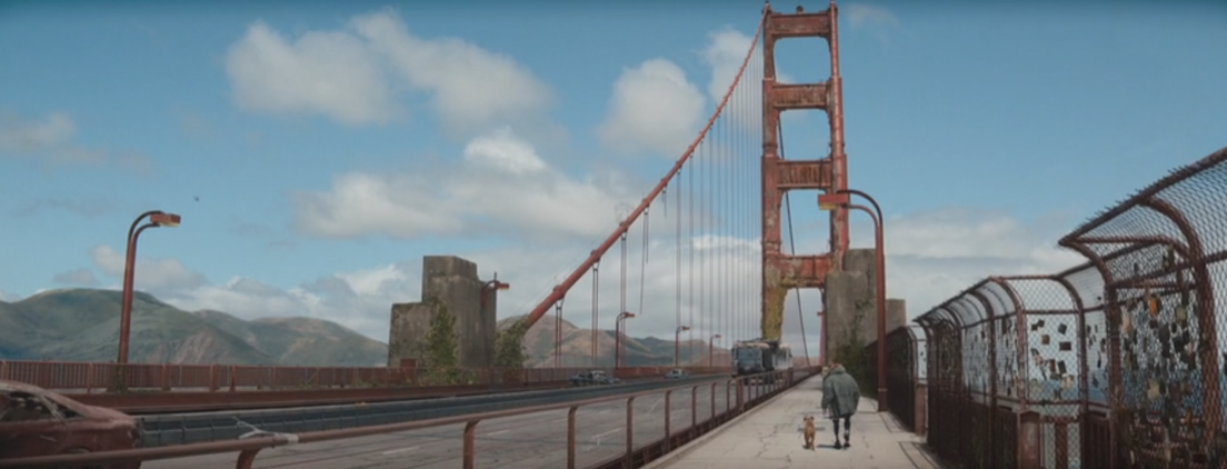 영화를 따라가다 보면 어느샌가 호기심 많은 아이 같은 인공지능 제프에게 감정이입이 된다. 핀치는 제프에게 네가 해야 할 유일한 임무는 굿이어를 돌보는 거라고 말한다. 하지만 가족이란 단순히 누군가가 누군가를 돌봄으로써만 지속되지 않는다. 제프와 함께 여행하면서 핀치는 단순히 데이터로 아는 것이 아니라 직접 보고 경험하는 것이 중요하다고 말한다. 핀치는 제프에게 어릴 때 떠난 아버지로부터 15살 때 샌프란시스코 골든브릿지가 나온 엽서 받은 이야기를 들려준다. 그는 성공해서 아버지를 찾아가기 위해 양복도 샀다고 말한다. 하지만 끝내가지 못했다고. 이 이야기를 듣고 제프는 핀치가 죽고 난 이후 굿이어와 함께 골든브릿지로 향한다. 그건 단순히 목표가 설정되어 있기 때문이 아니었다. 제프는 굿이어와 함께 살아가기 위해 다리를 건너 새로운 삶을 받아들이려 한 것이다. 자신을 단순히 굿이어를 돌보는 기계라 생각했다면 제프는 골든브릿지까지 갈 필요가 없었다. 비록 핀치가 곁에 없지만, 그들은 마음으로 이어진 가족이다. 그렇기 때문에 함께 살아간다는 목적을 이루기 위해 많은 것을 경험하고 이야기 나누기 위해 여행을 계속한다.
