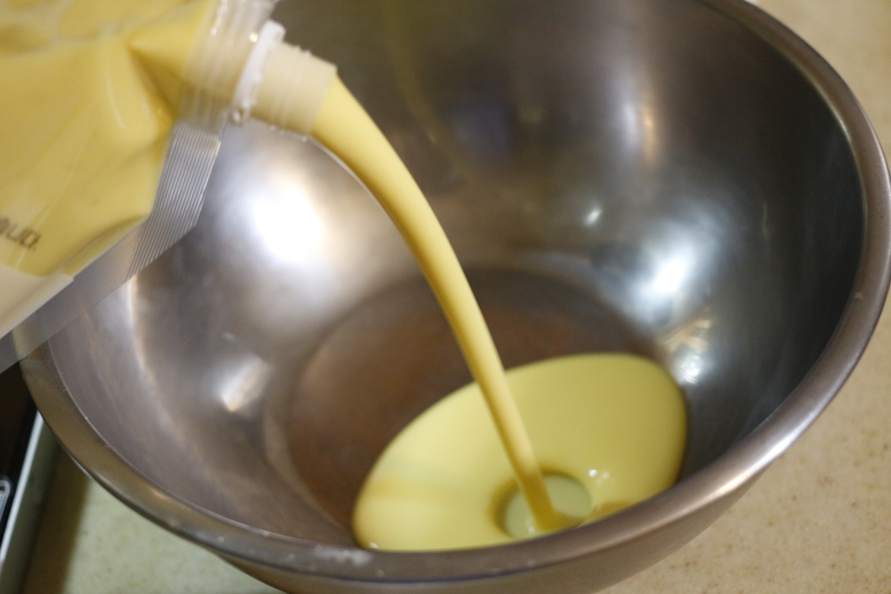 볼에 저스트 에그를 붓고 샌드위치 전체에 저스트 에그를 묻혀서 후라이팬에 맛있게 구웠다.