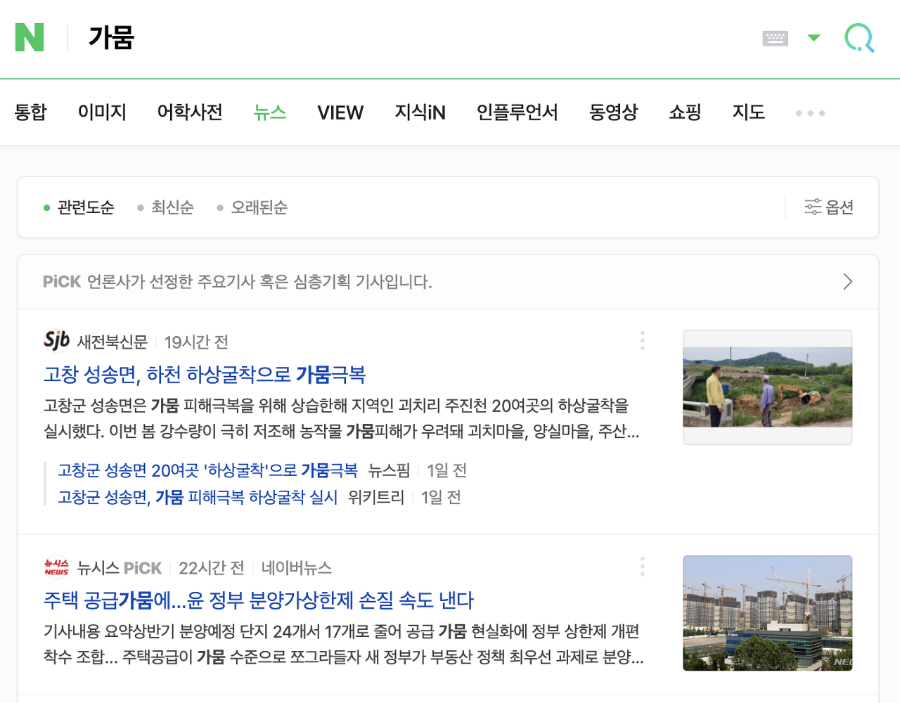아마 이 글을 읽고 5월에 가뭄이 심각했다는 것을 처음 안 사람들도 있을 것이다. 도시에 살면 이 가뭄을 느끼기 힘들었을 것이다.