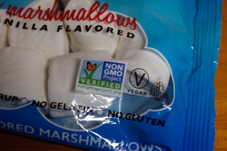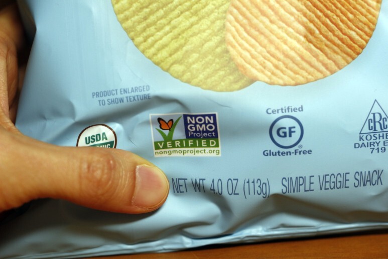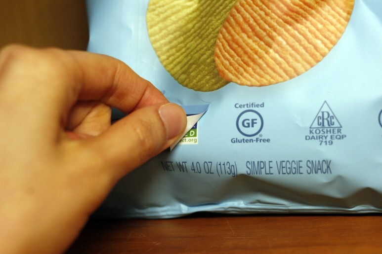 이 이야기가 갑자기 기억이 난 이유는 외국에서 비건 치즈나 비건 머쉬멜로우를 수입하는 이팅더즈매터에서 판매하는 제품 때문이었다. 이팅더즈매터에서 비건 치즈, 비건 머쉬멜로우, 비건 감자칩을 배송시켜서 먹는데, 포장지에 스티커가 붙어있는 것이다. 왜 포장지에 스티커가 붙어있는지 궁금해서 그 스티커를 떼보니 너무나 크고 선명하게 'Non-GMO'라고 표시되어 있었다. 'Non-GMO' 위에 붙은 스티커 위에는 '이 식품에는 유전자 변형 식품이 첨가되었을 수도 있습니다.'라는 무섭고도 황당한 문구가 쓰여있거나 메이드인유에스에이가 영어로 적혀있었다.